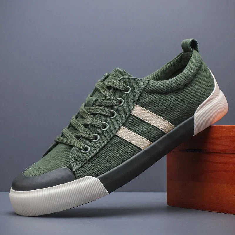 Crafted from premium canvas, these shoes showcase a sleek two-stripe design for casual style. A cushioned insole and non-slip rubber outsole provide all-day comfort and stability.