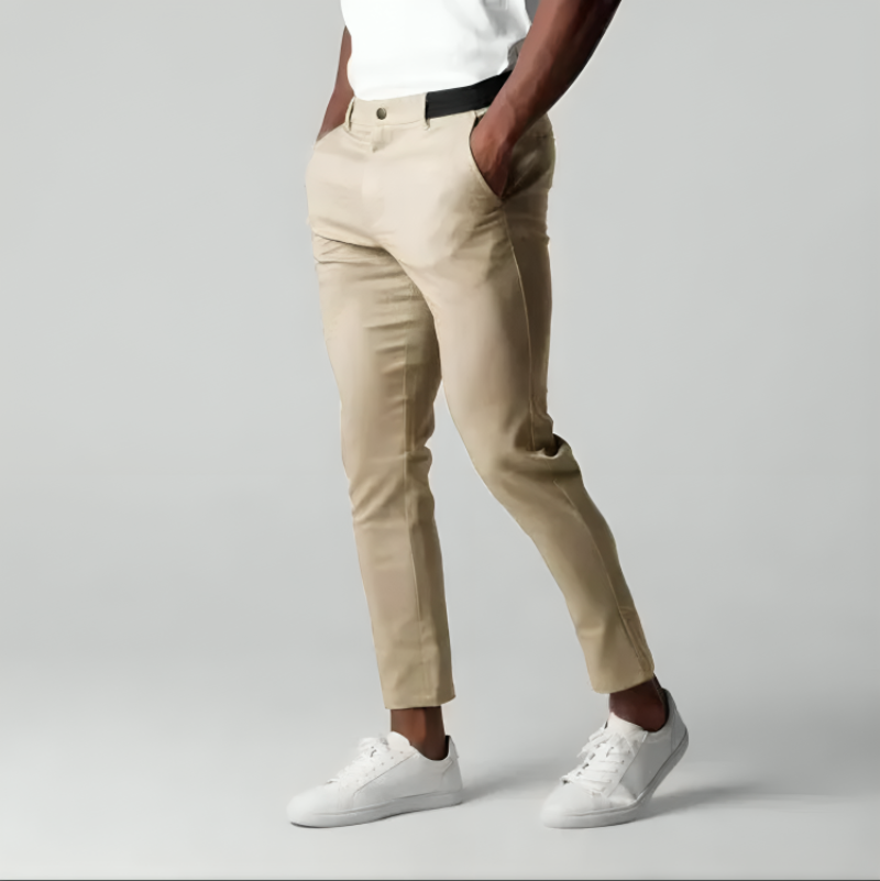 Crafted from breathable cotton with subtle stretch and a sharp taper, they’re built to hold their shape while keeping you at ease.