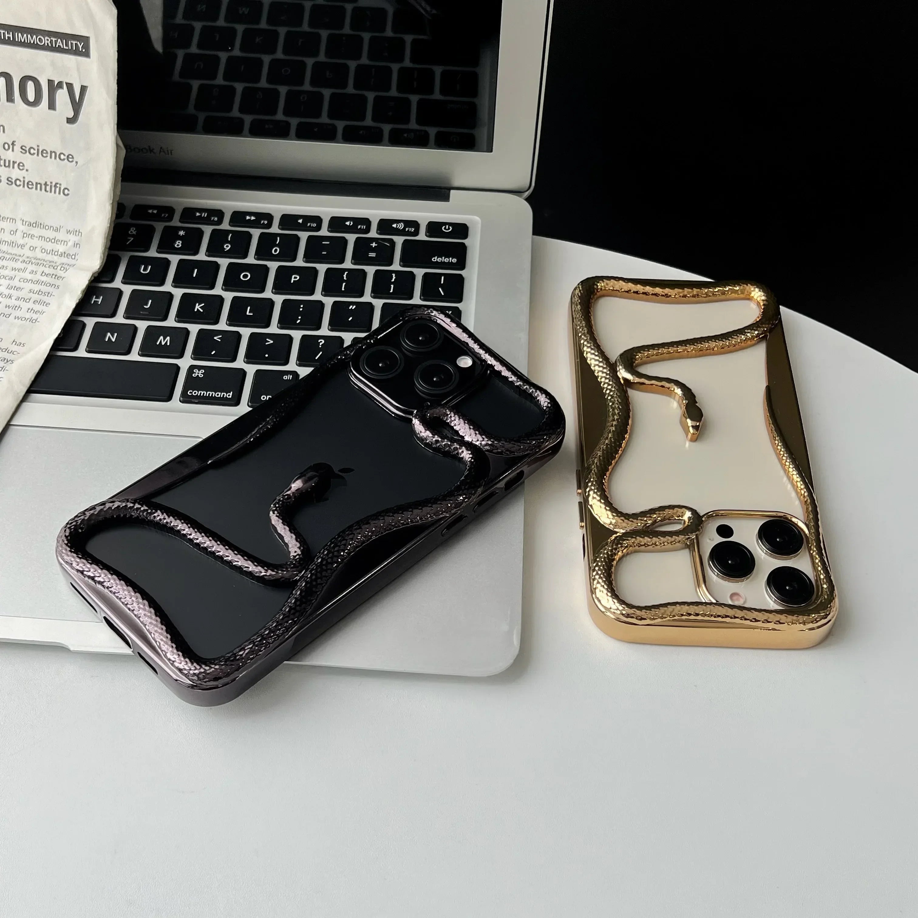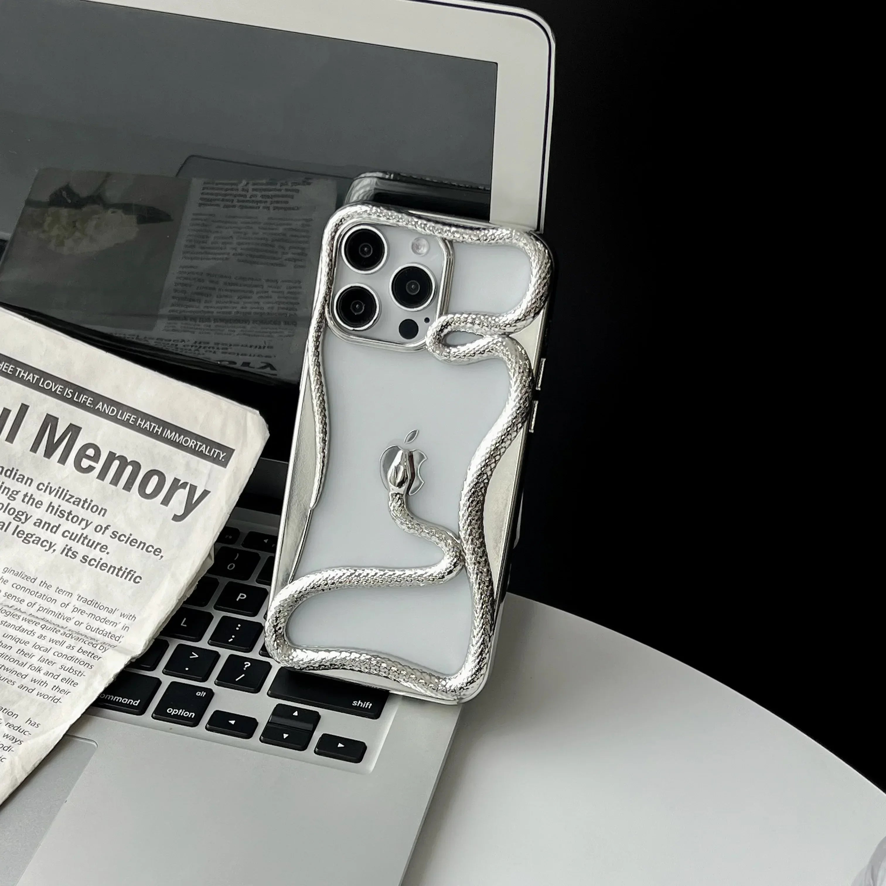 This sleek, heat-dissipating phone case features a unique hollow snake plating design, combining style and functionality for ultimate protection on your iPhone.