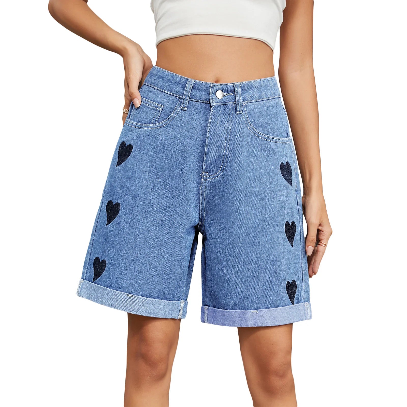 With stitched hearts and a soft drape, these denim shorts bring a little sweetness to sunlit days. The tailored waist and fold-up hem add shape and intention to a breezy classic.