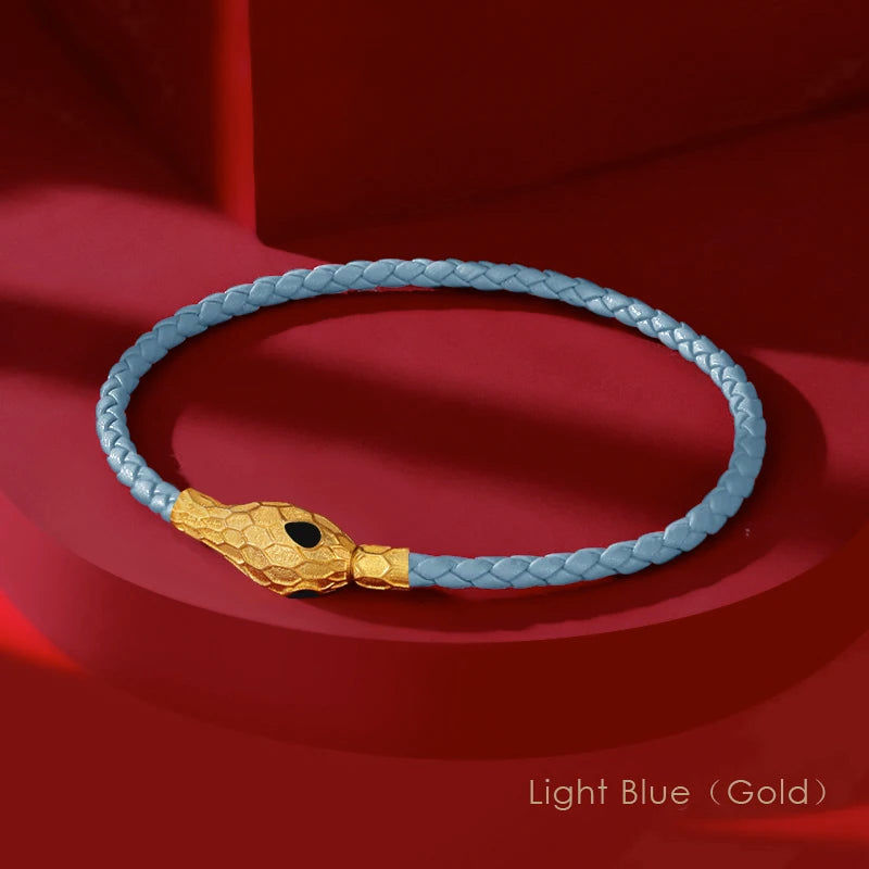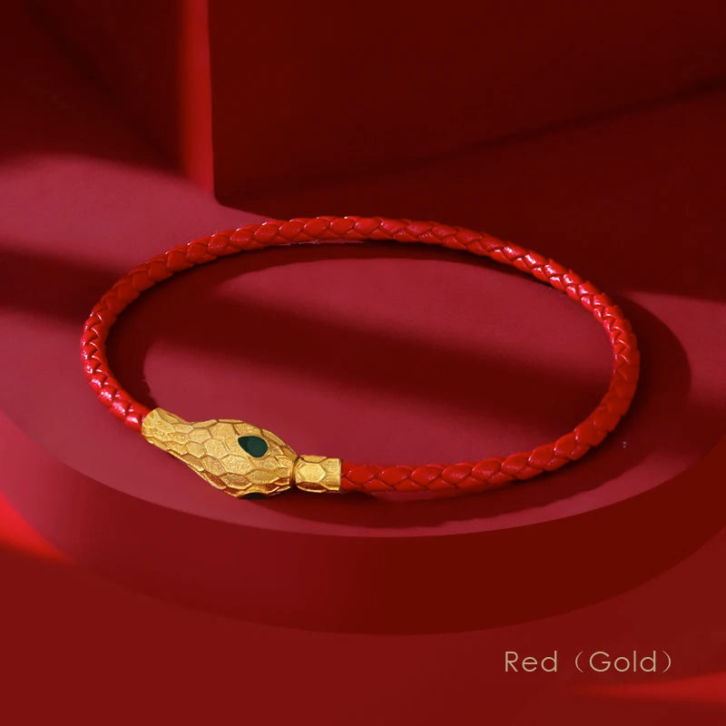 Bound in braided leather and fastened with a serpent��s piercing gaze, the Aspis Viper Bracelet is more than an accessory��it��s an extension of presence, coiling around the wrist with quiet dominance.